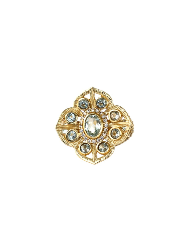 Bague en laiton plaqué or avec des pierre en topaze bleu.
