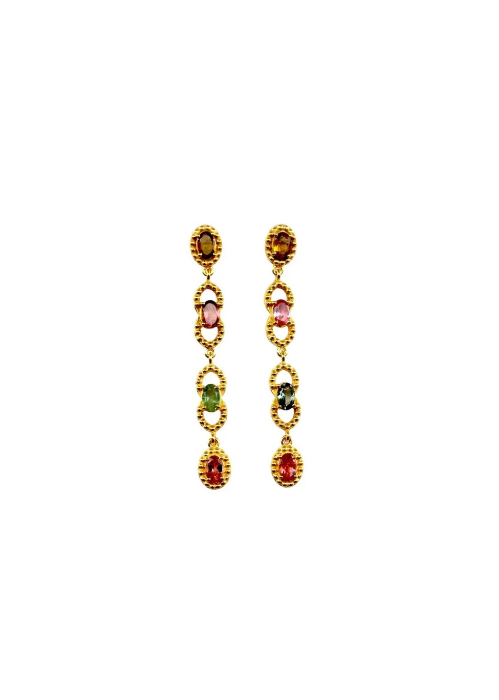 Boucles d'oreilles plaquées or, ornées de tourmalines