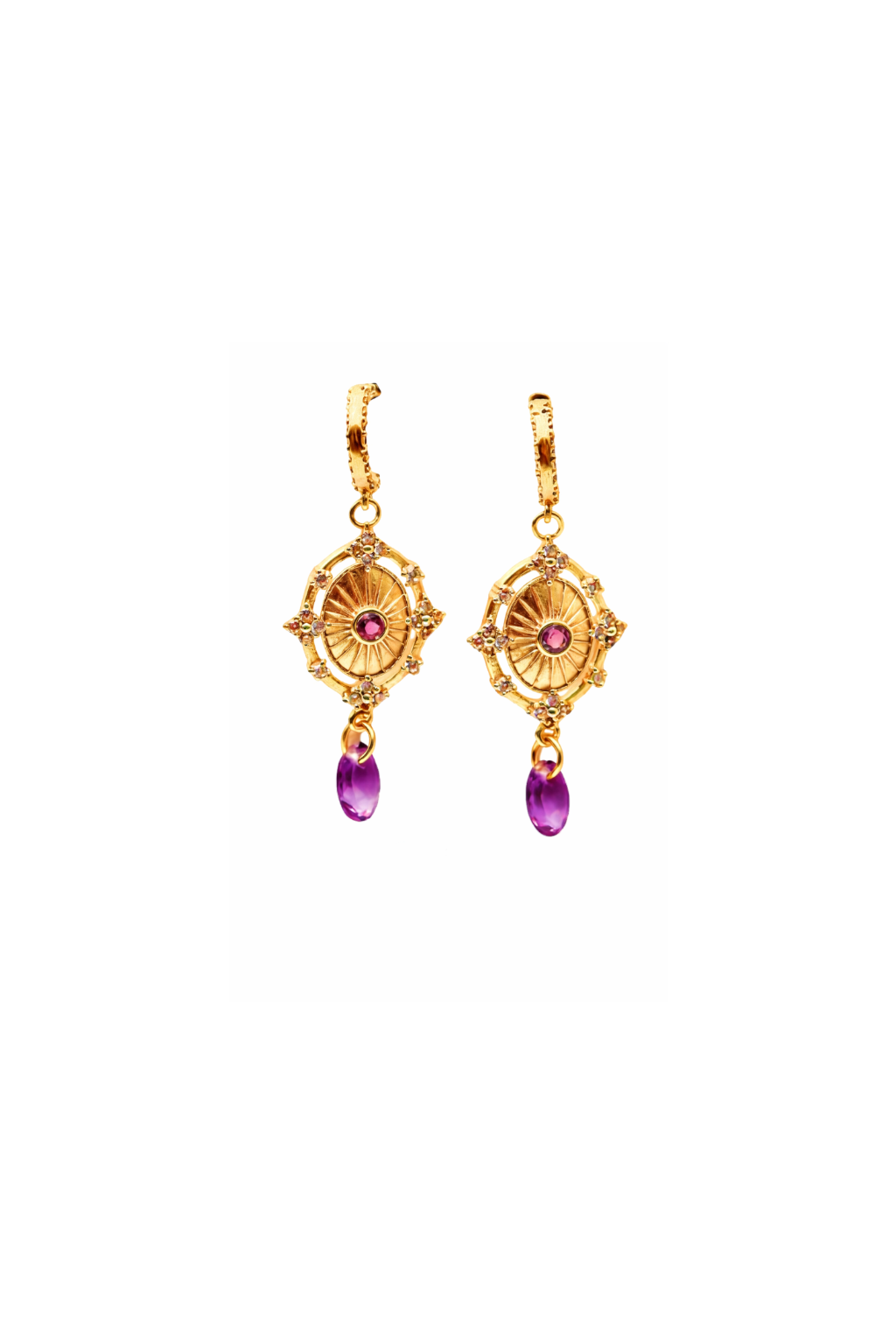 Boucles d’oreilles sont plaquées or, ornées d’améthyste.