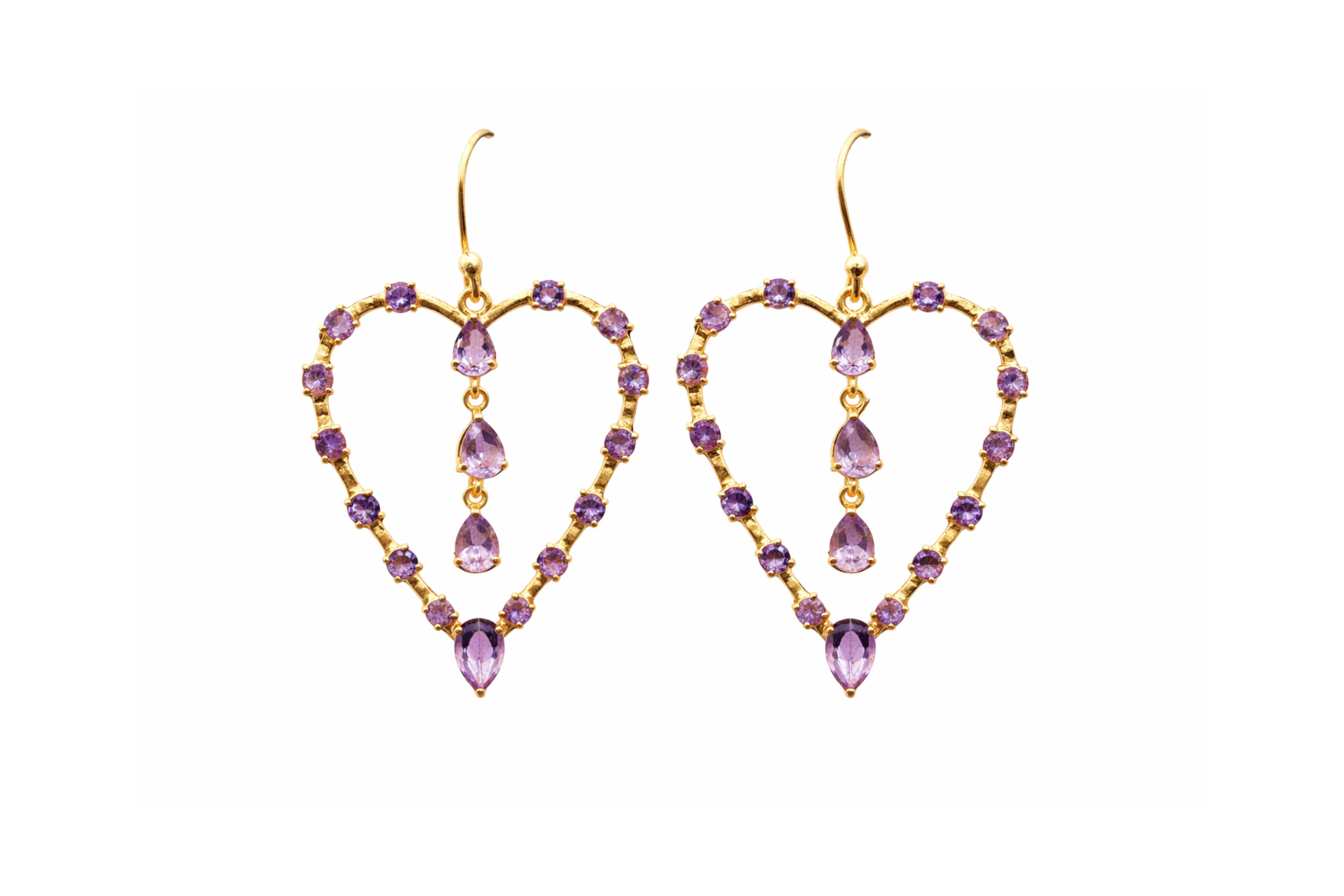 Boucles d’oreilles sont plaquées or, ornées d’améthyste.