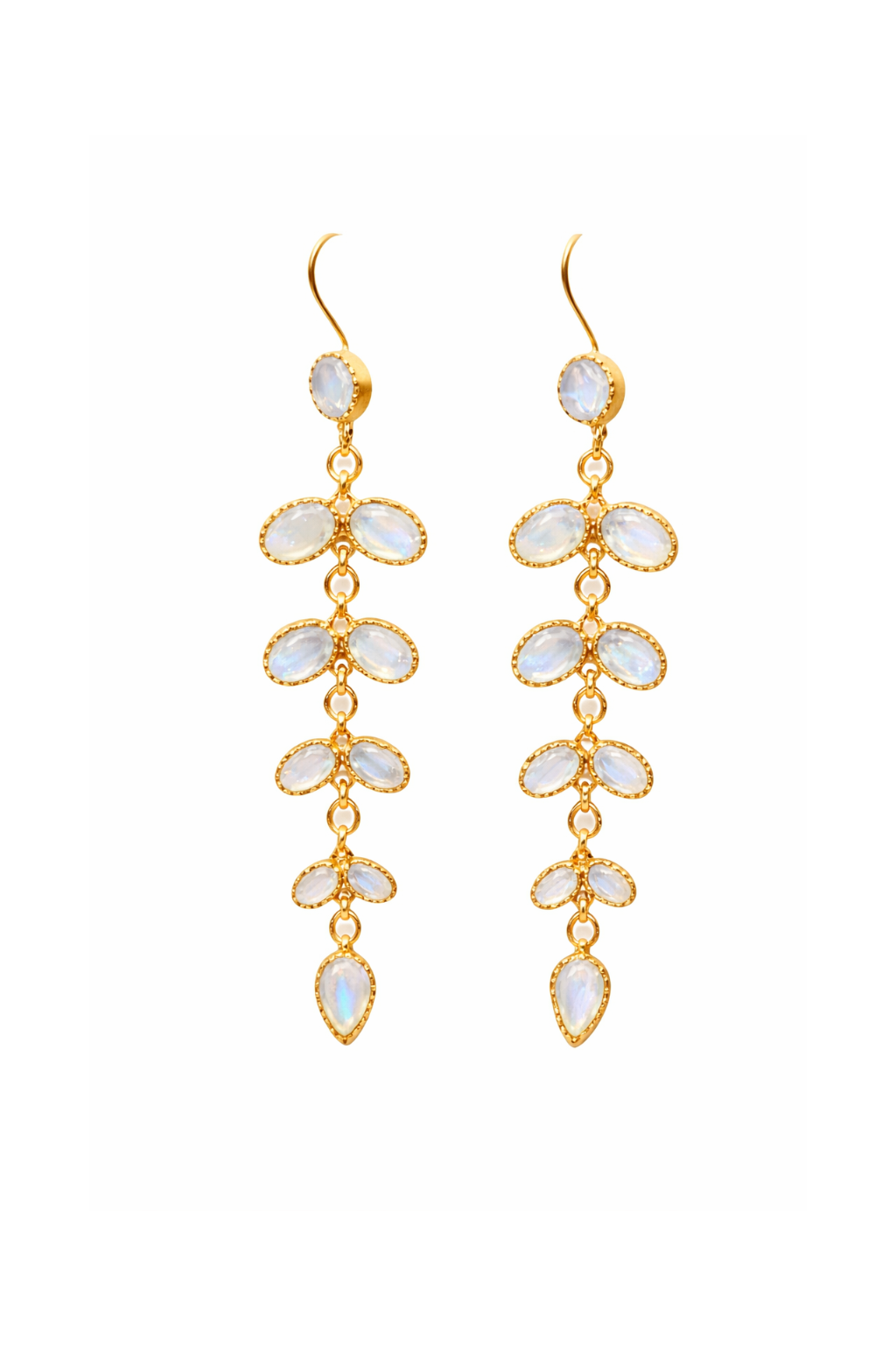 Boucles d’oreilles plaquées or, ornées de pierre de lune et de perles.