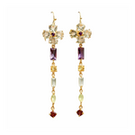 Les boucles d’oreilles Girasole sont en laiton plaqué or et ornées de pierres naturelles de de quartz rose, d’améthyste, de topaze bleue et de quartz citron.