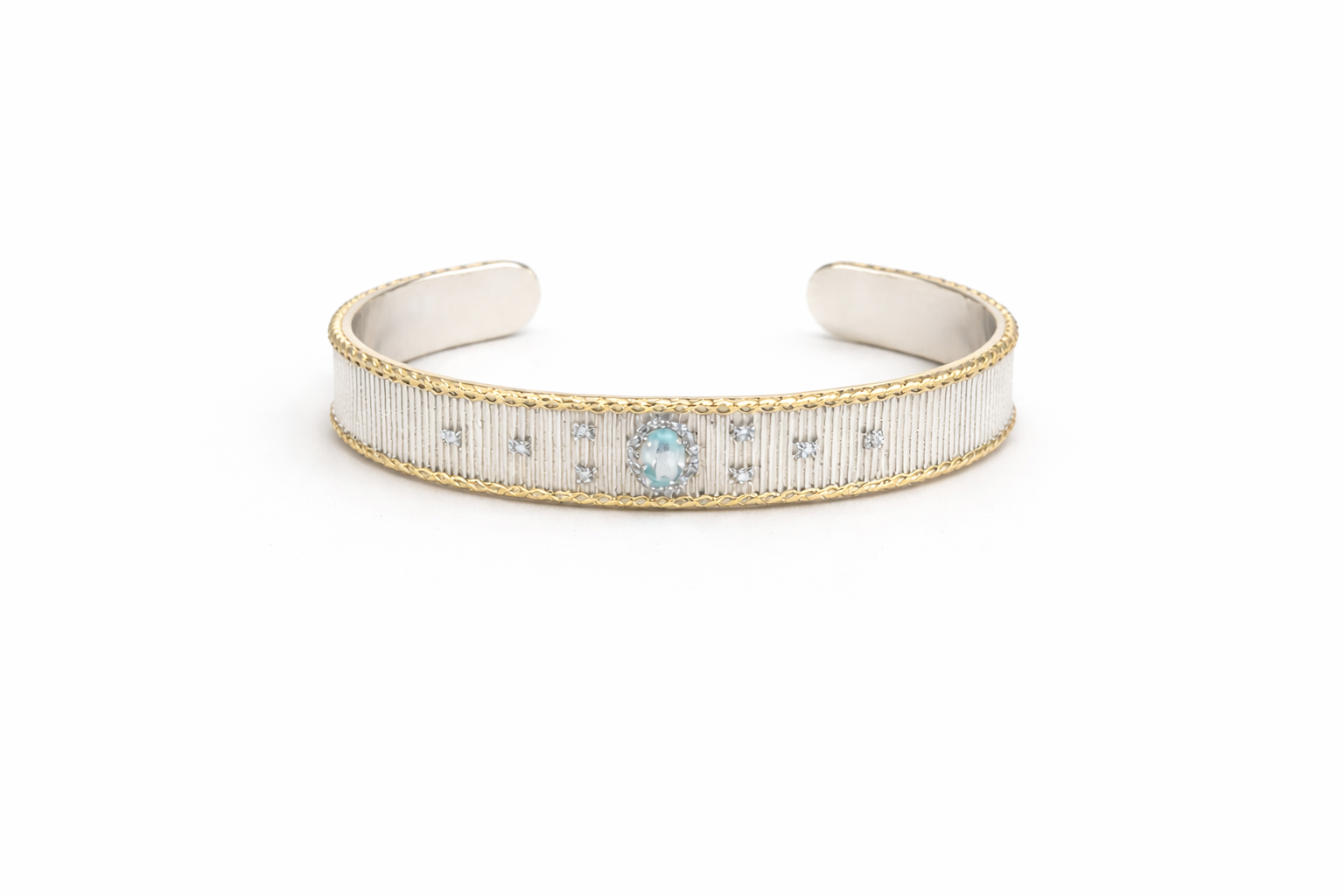 Bracelet CAMALA plaqué argent, orné de topaze bleues .