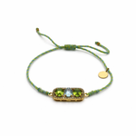 Bracelet Liza plaqué or sur cordon vert, ornée d’améthyste topaze vert .