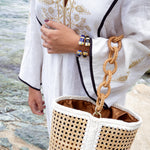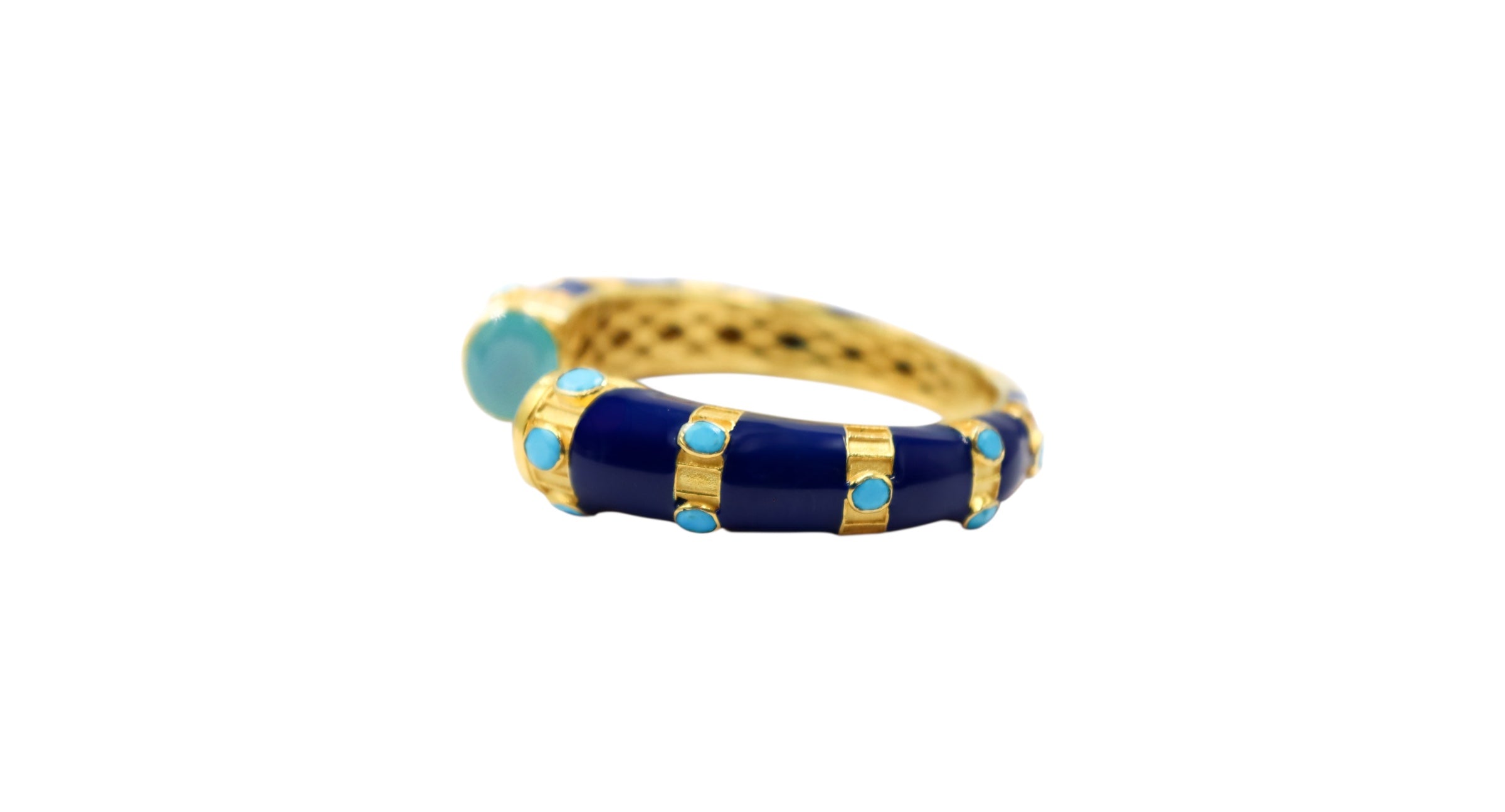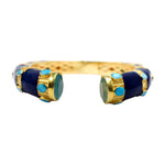 Bracelet en laiton plaqué or orné d'émail bleu et pierres arqua blue.