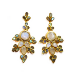 Boucles d'oreilles plaquées or, ornées de labradorites et pierre de lune.