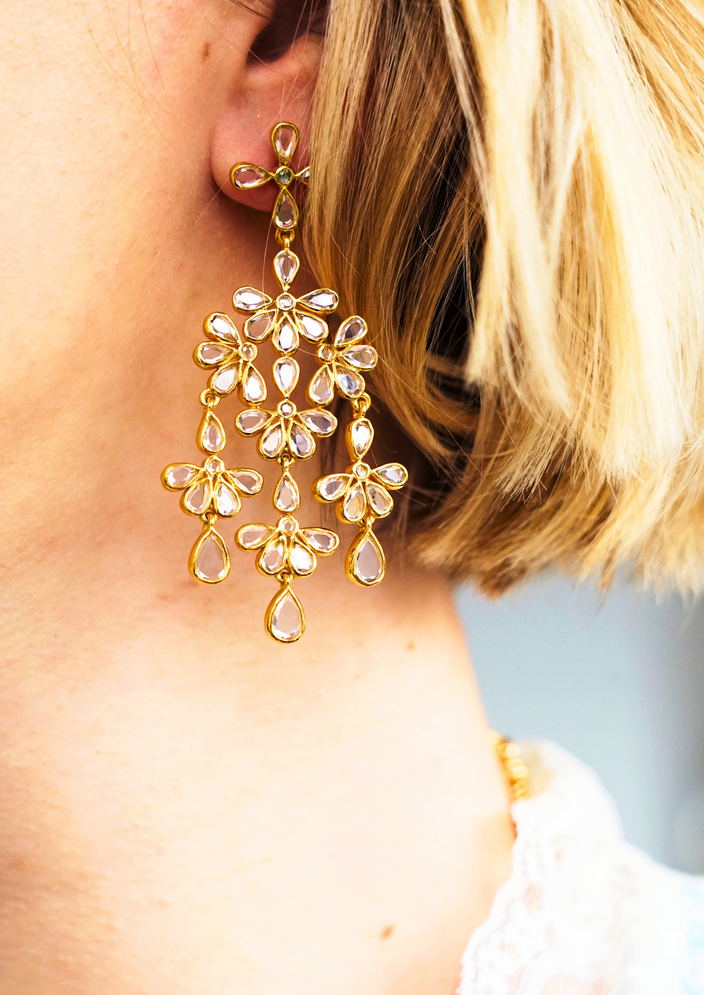 Boucles d'oreilles plaqué or, ornées de polis crystal.