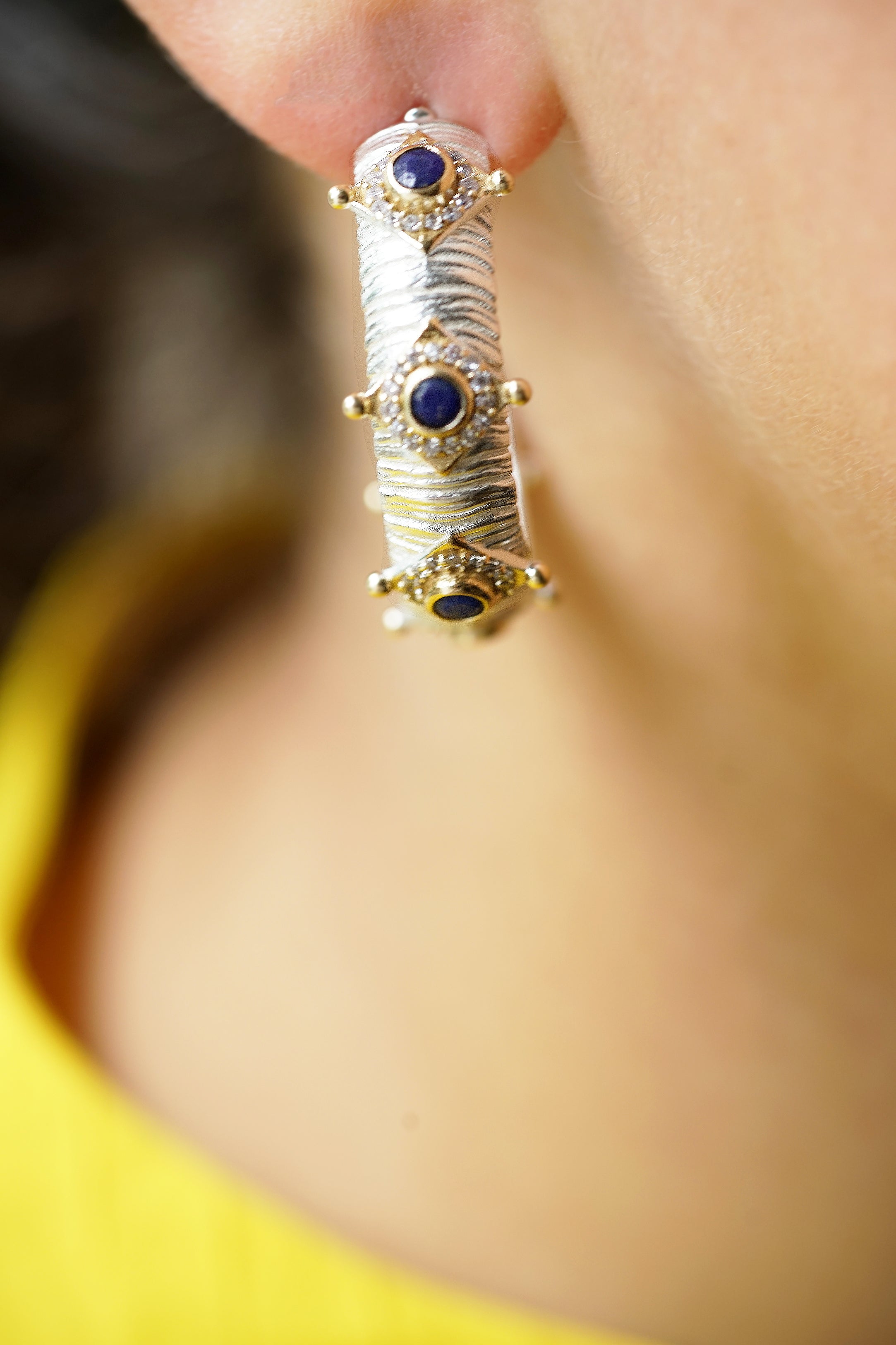 Boucles d'oreilles plaquées argent, ornées de lapis lazuli.