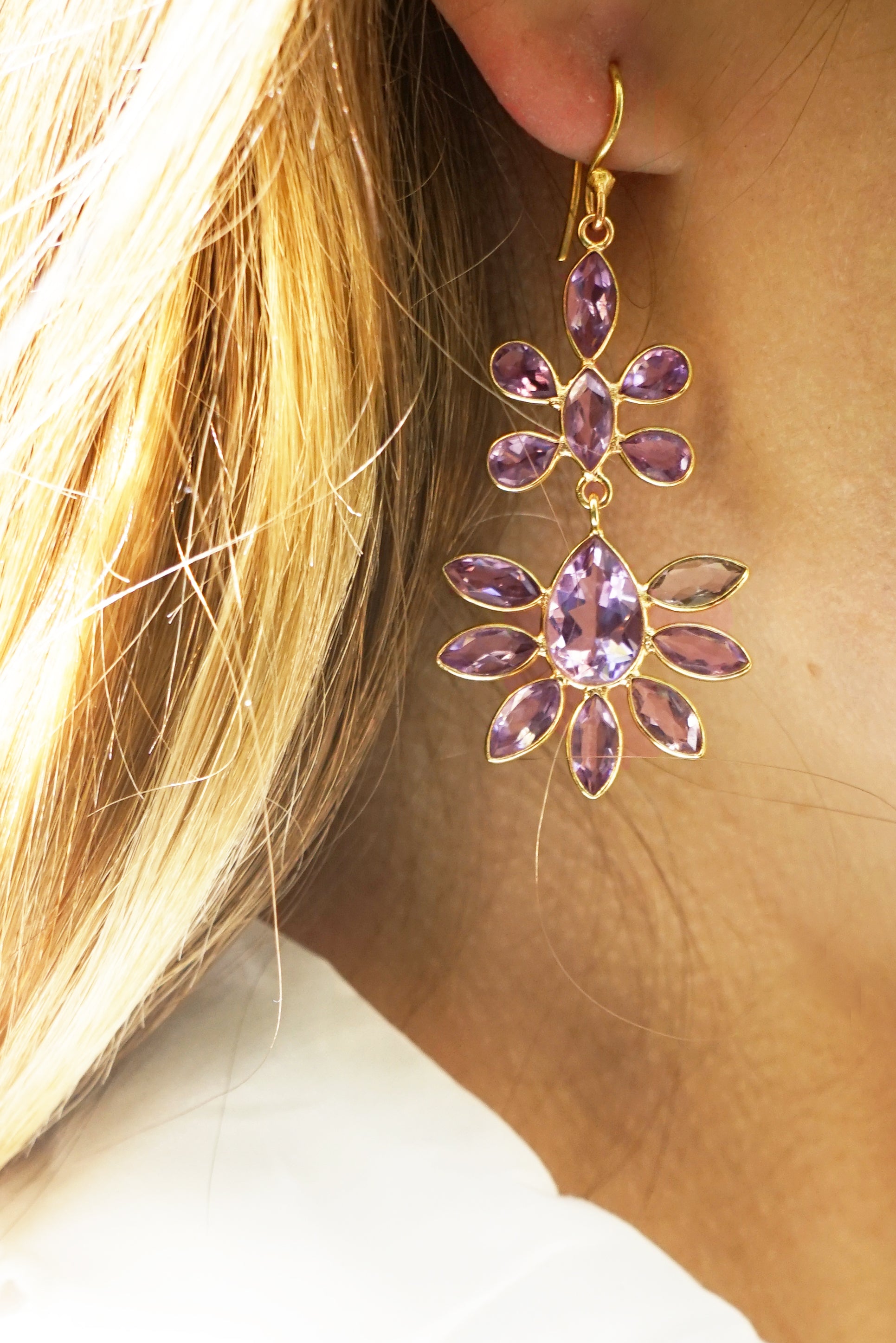 Boucles d'oreilles en laiton plaqué or ornées de améthyste.
