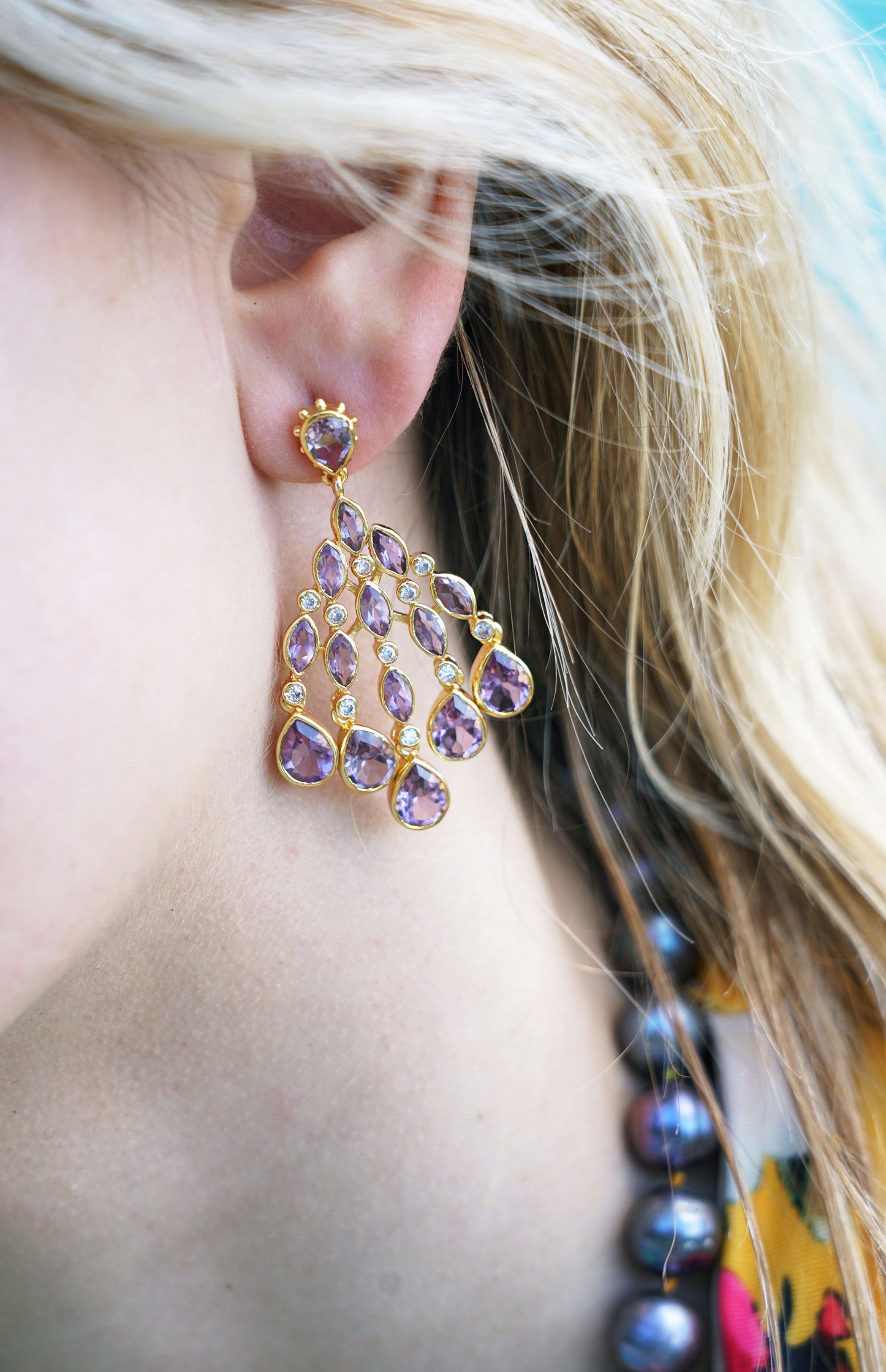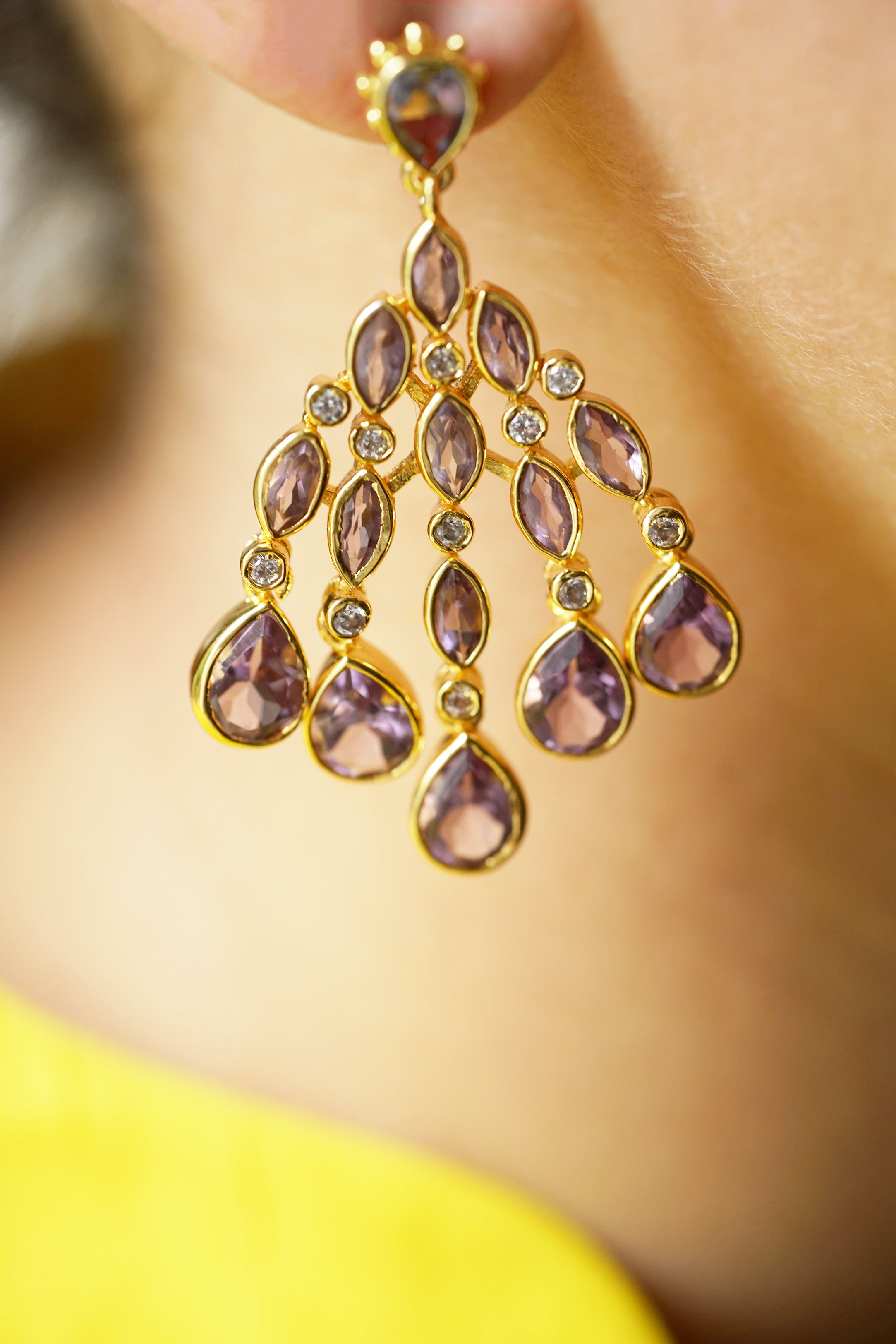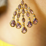 Boucles d'oreilles en laiton plaqué or ornées d'améthystes.