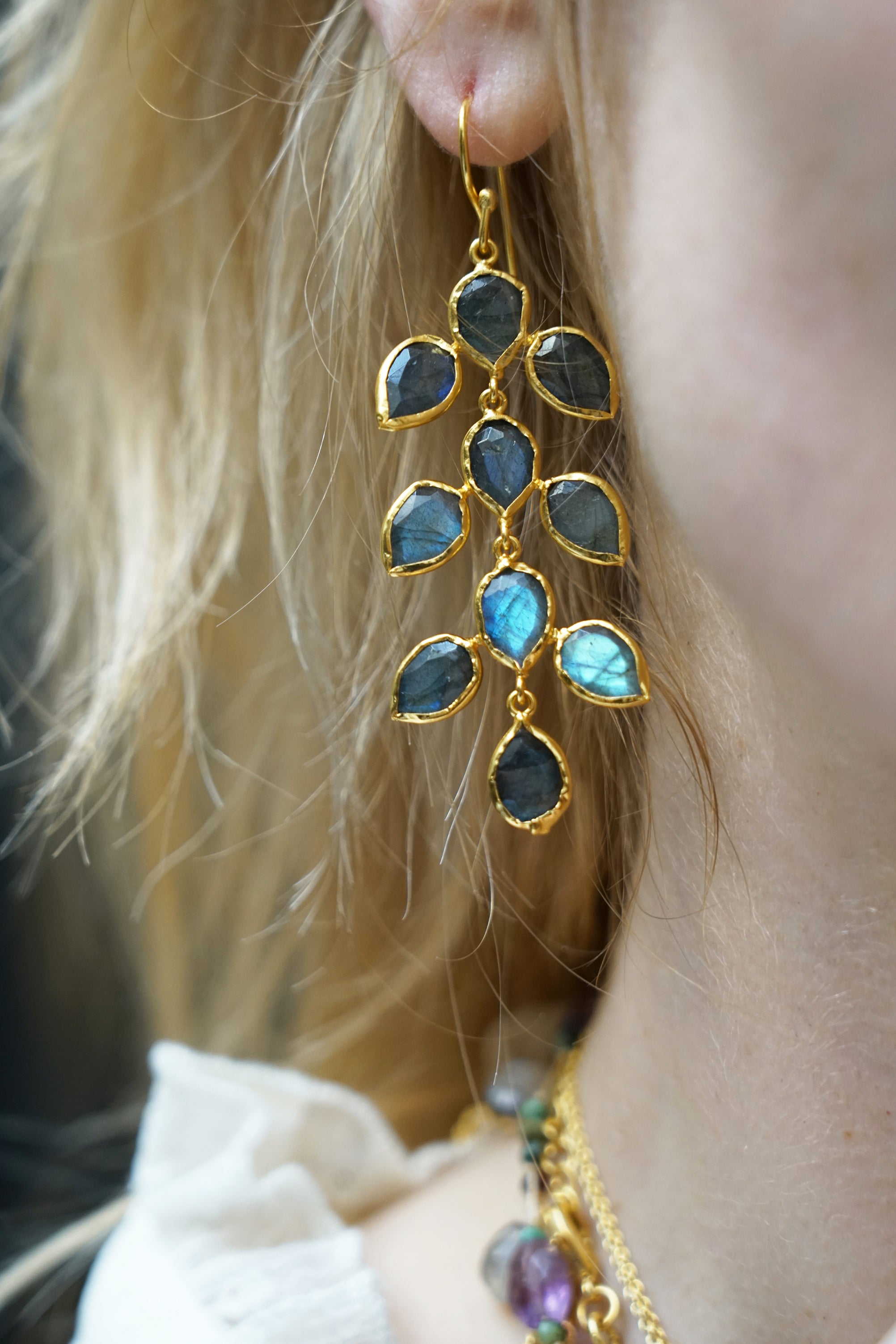Boucles d'oreilles en plaqué or ornées de labradorites.