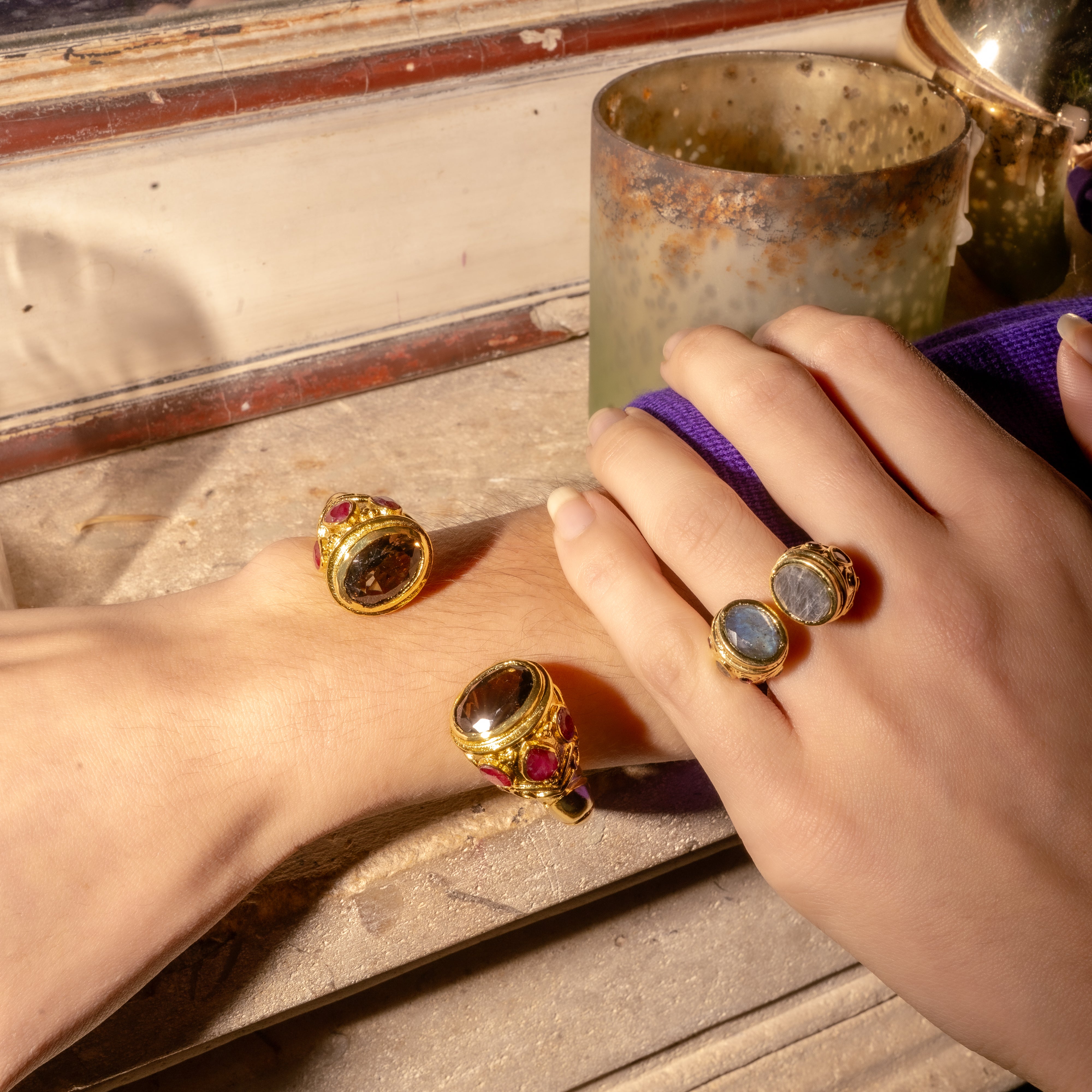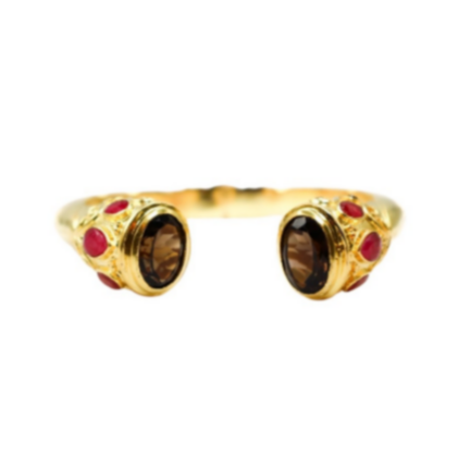 BRACELET TIYA QUARTZ FUMÉ/ RUBIS