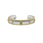 Bracelet en laiton plaqué or et argent, orné d'onyx vert.