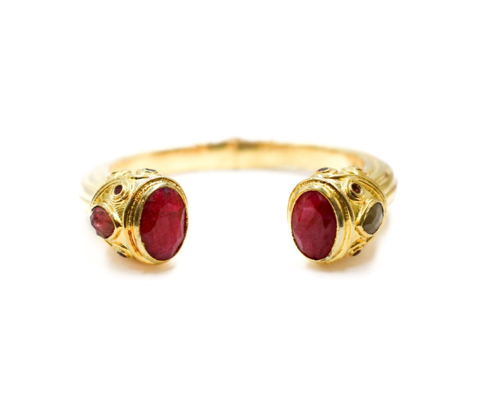 Bracelet laiton plaqué or serti de rubis et de tourmalines