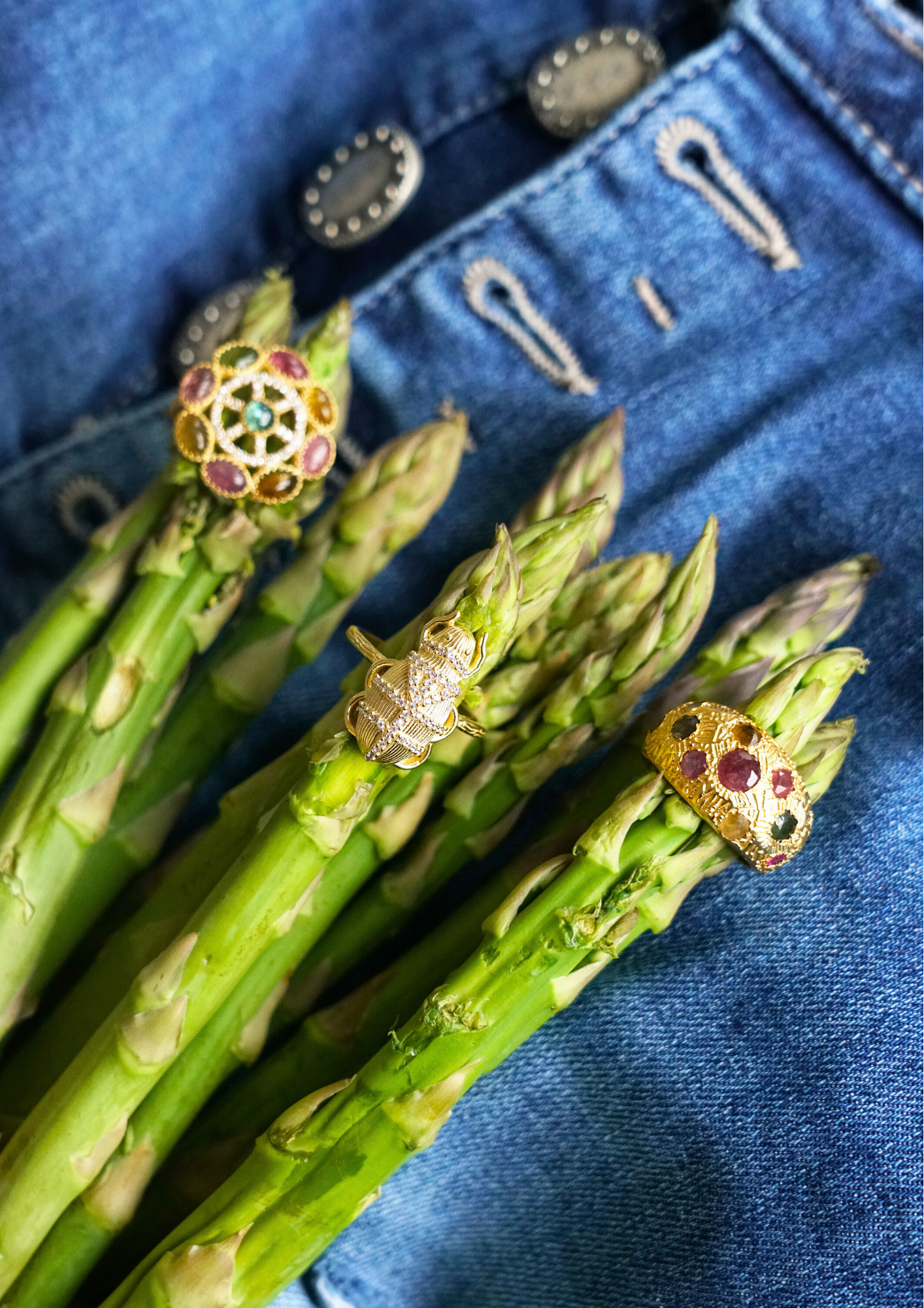 La bague CHANDRI est en laiton plaqué or, ornée de multi pierres tourmalines.