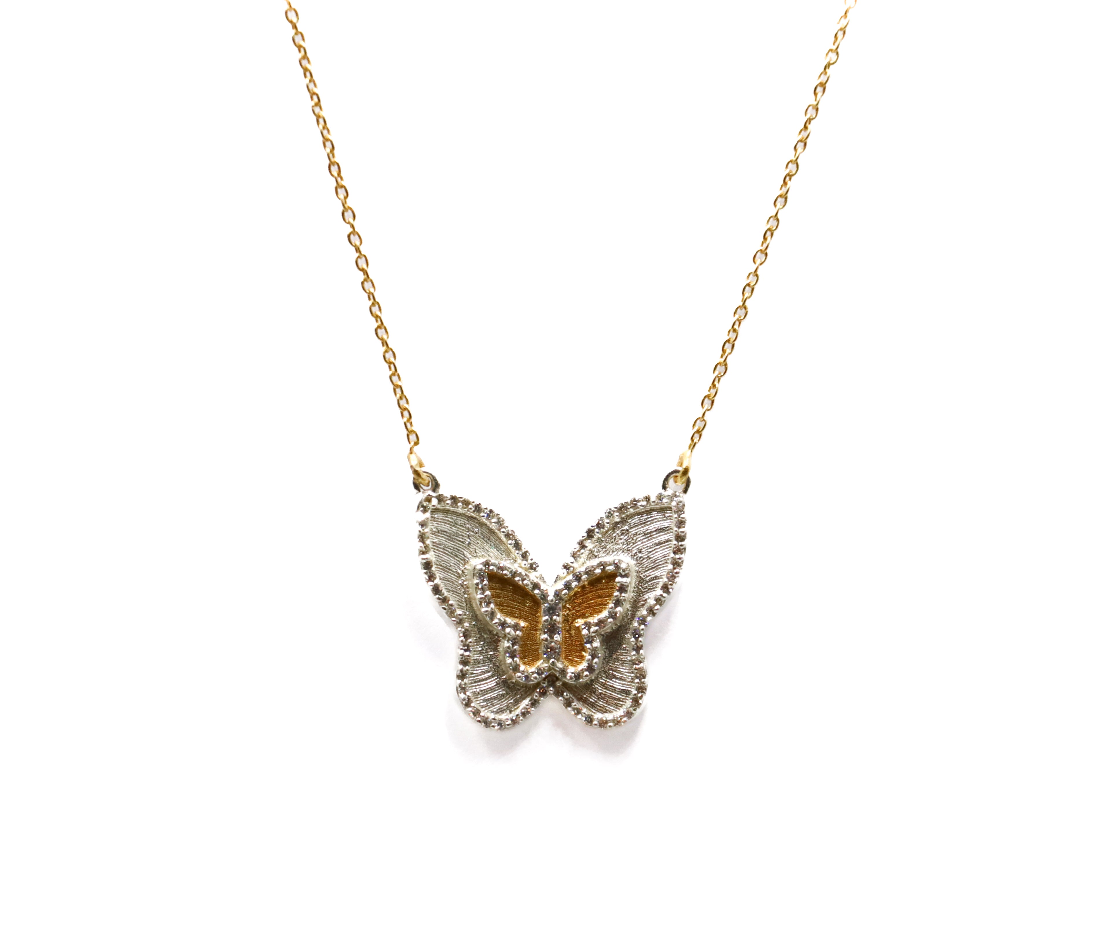 Collier plaqué or et argent, orné de zircons.