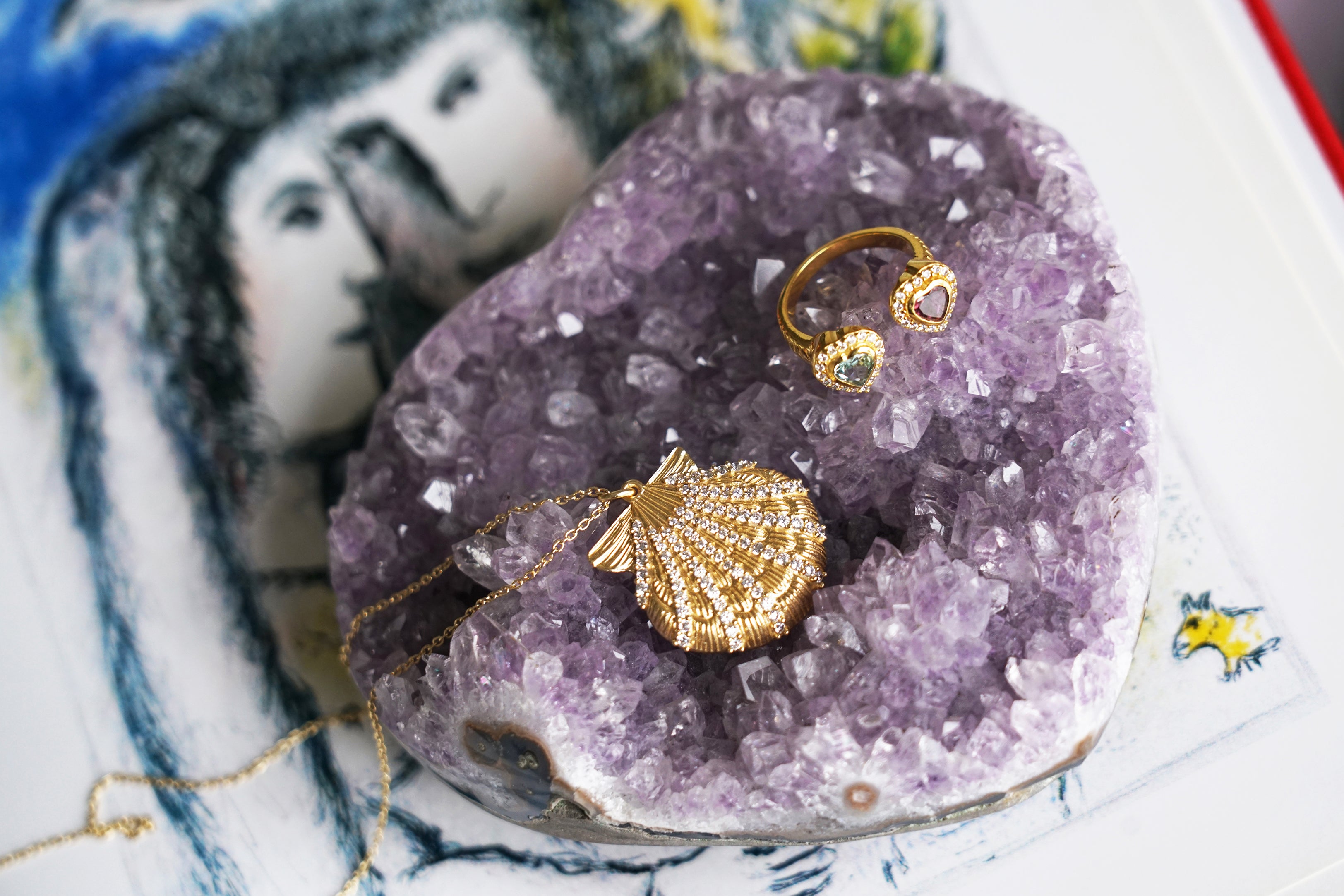 BAGUE CYCLAMEN AMETHYSTE VERTE