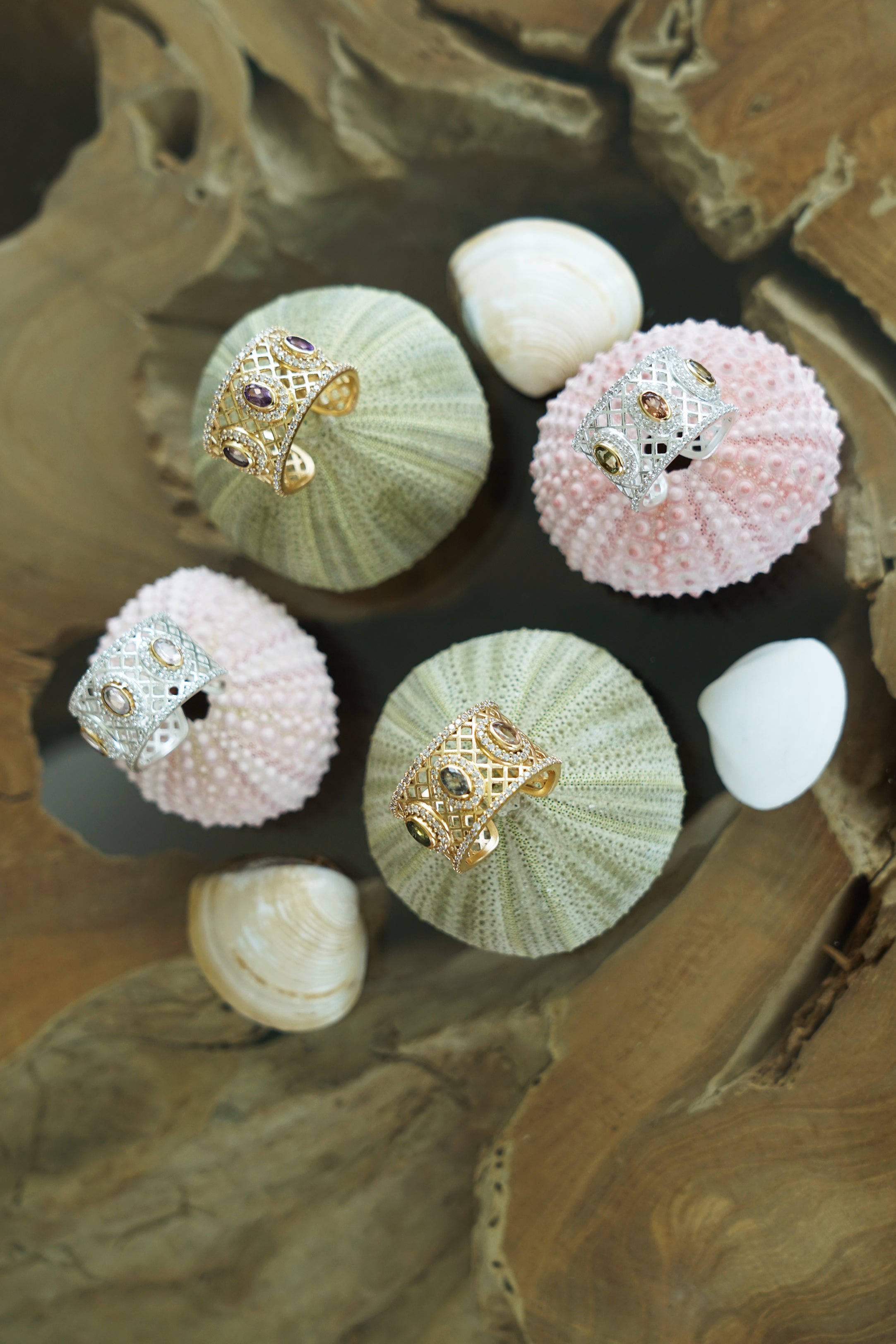 Bague ANALI plaqué or, orné de zircons et de tourmalines.