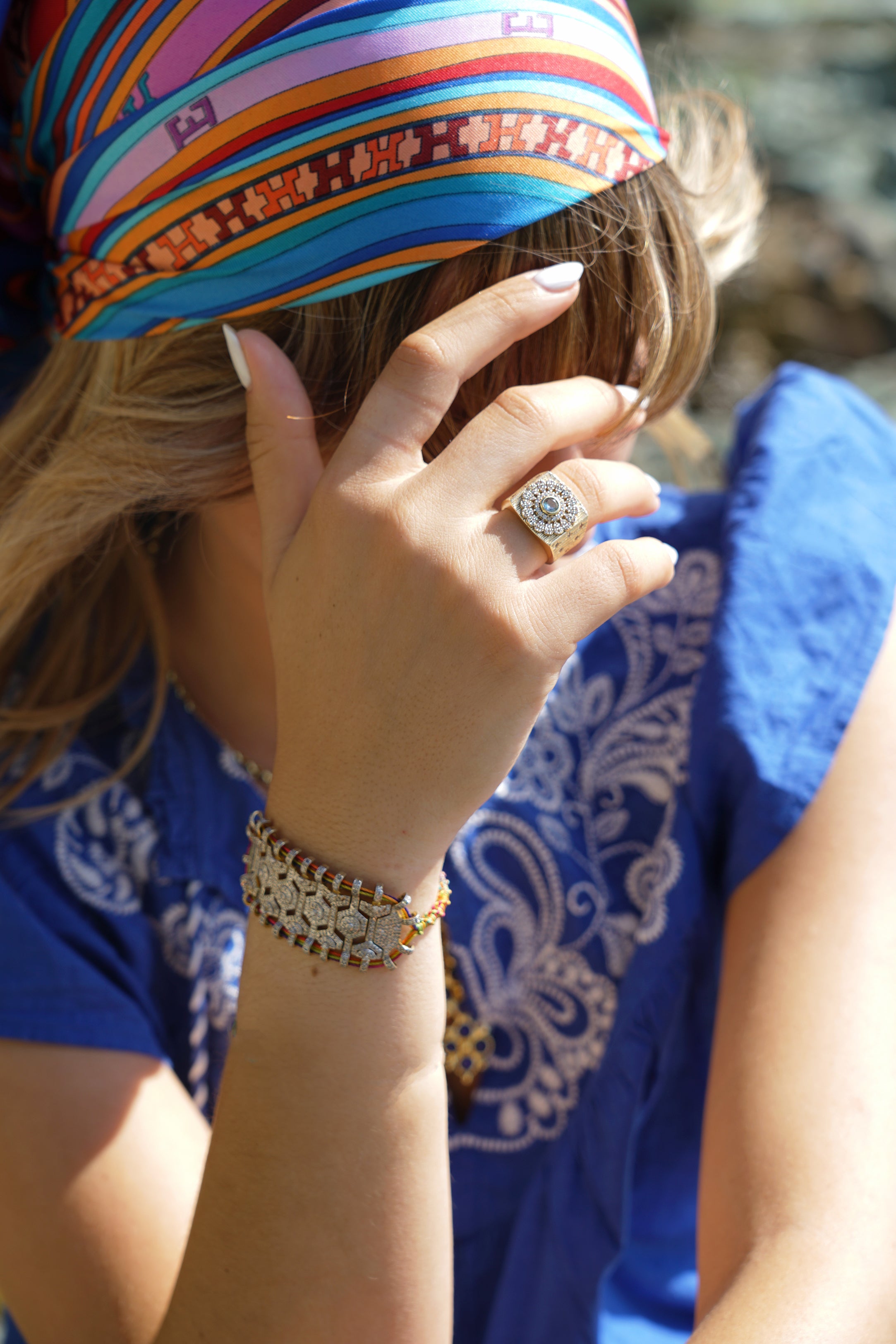 BAGUE CISTUS OR ET TOPAZE BLEU