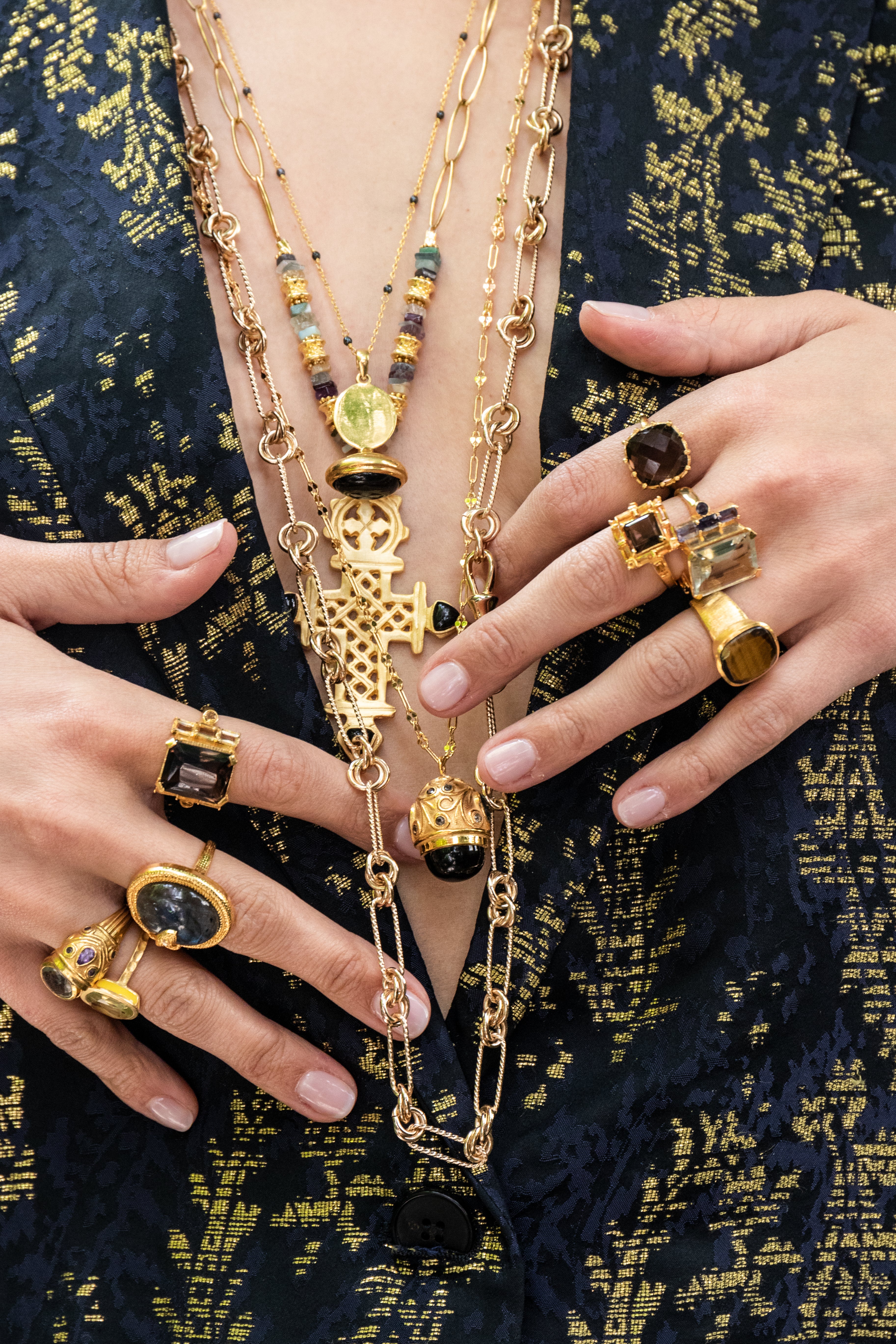 Chaque coup de cœur me pousse à transmettre rapidement mes idées à mes fournisseurs à Jaipur, afin qu'ils préparent les prototypes avant mon arrivée en Inde. C'est au moment où je tiens le prototype que je réalise si le bijou imaginé prend forme, et cette phase me permet souvent d'ajuster le choix des pierres. Je consacre une attention particulière à la composition des gemmes, comme l’améthyste verte associée à la topaze bleue, pour créer des pièces uniques.