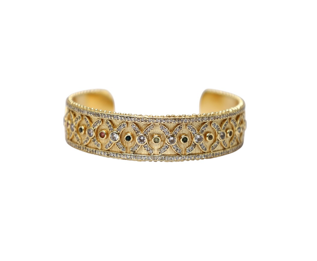 Bracelet CORFOU plaqué or, orné de tourmalines et de zircons.
